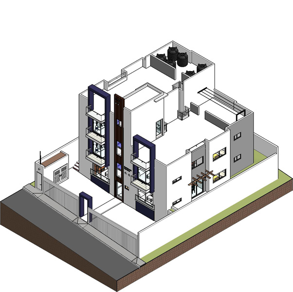 Proyecto residencial, donde el juego de elementos y luces que coronan la edificación reflejan el expresionismo, el escenario, el realce... como concepto que expresa nuestra cultura contemporánea.