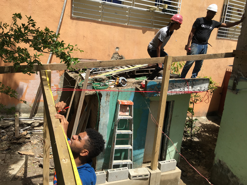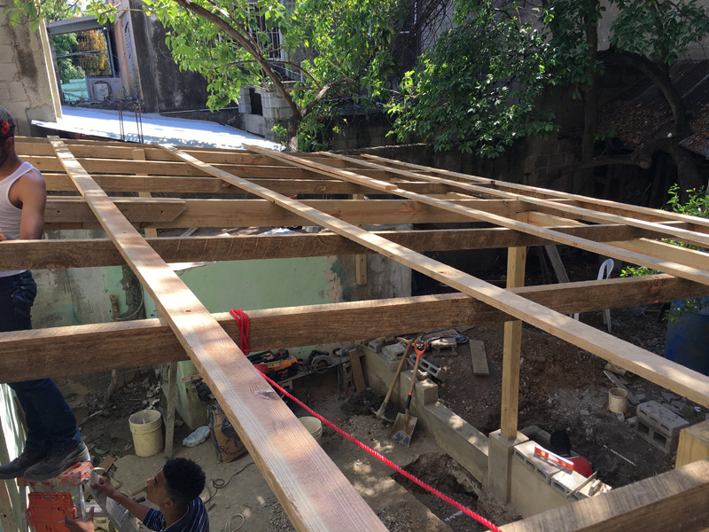 Demolición; Plomería; Electricidad; Pisos en Cerámica; Zapatas; Colocación de bloques; Pañete; Barras de Seguridad para adultos; Estructura en madera; Inst. Zinc; Pintura