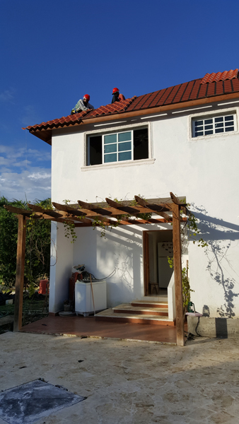 Un tornado donde casi la mitad de todas las Tejas de Aluzinc fueron desprendidas por el viento, se convirtió en el escenario de un gran reto, donde no obstante al maltrato sufrido en el Aluzinc, logramos moldear y colocar nuevamente todas las piezas originales en su lugar.