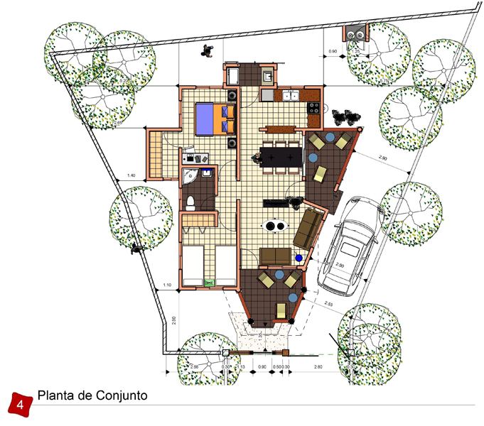 Pequeña residencia con un diseño nacido del perímetro de su terreno, donde lo que pudo haber parecido una deformación, se convirtió en una unidad atractiva y funcional.