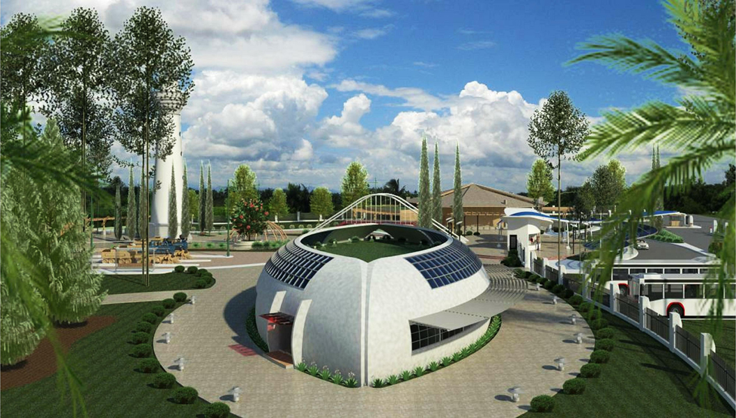 Parque emplazado en un entorno natural, con una gran variedad de relieves en todo su terreno y una acogedora gama de arboles y distintos elementos naturales que permitieron a esta animación transmitir  la fresca y atractiva sensación que busca inspirar el proyecto.
