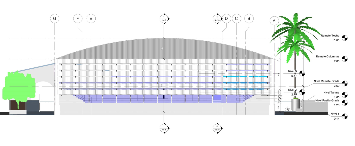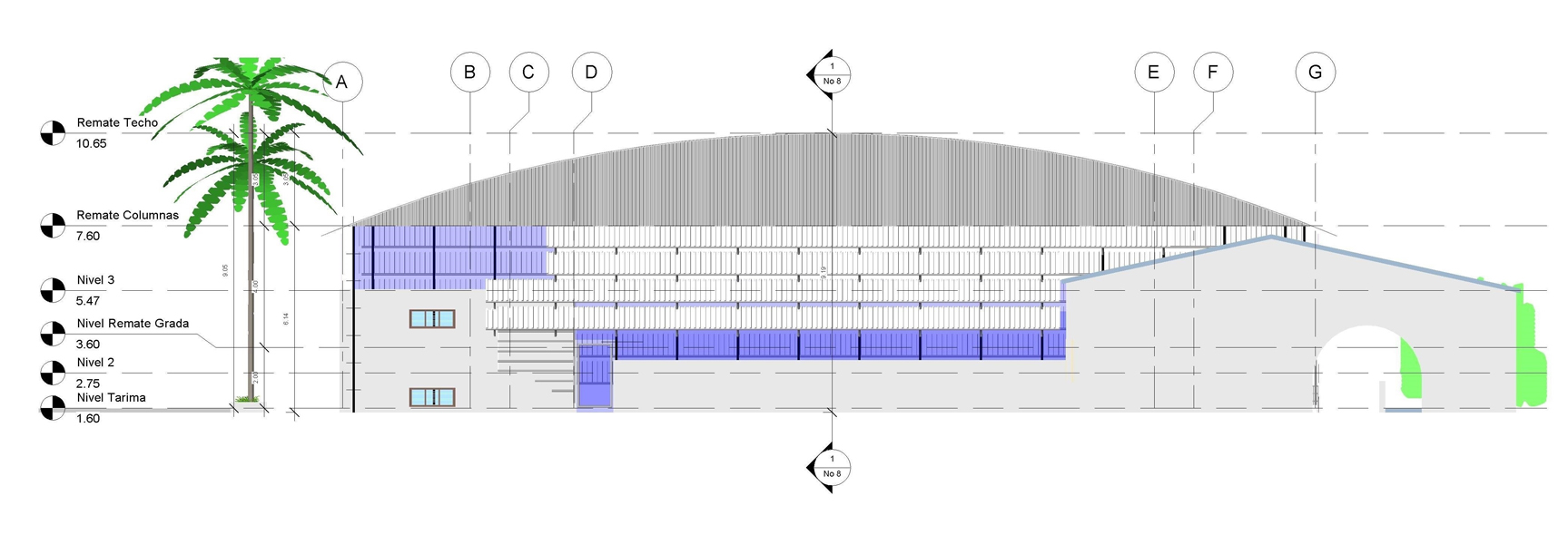 Salón Multiuso para recreación y eventos del Colegio Claret, con capacidad para Aprox. 600 personas. Trabajo realizado en colaboración con los ingenieros Anderson Martínez y Adad Martínez de Constructora Marli.
