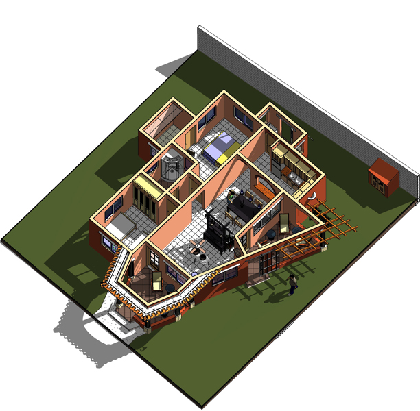 Pequeña residencia con un diseño nacido del perímetro de su terreno, donde lo que pudo haber parecido una deformación, se convirtió en una unidad atractiva y funcional.