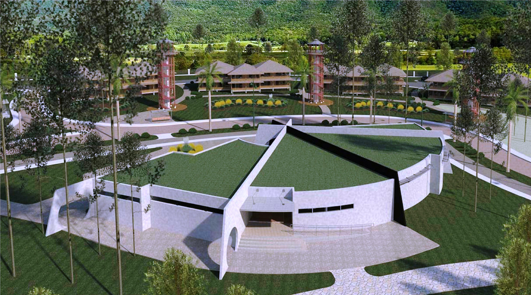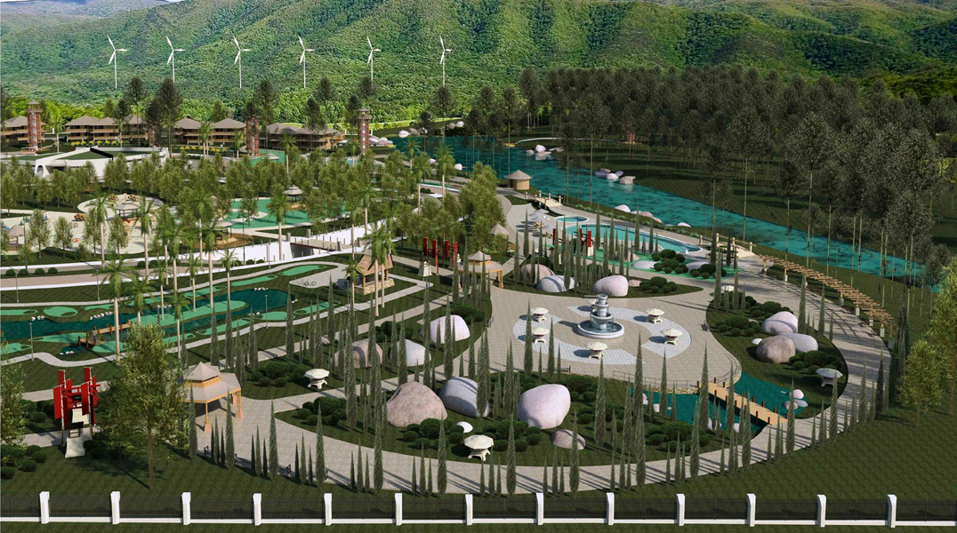 Parque emplazado en un entorno natural, con una gran variedad de relieves en todo su terreno y una acogedora gama de arboles y distintos elementos naturales que permitieron a esta animación transmitir  la fresca y atractiva sensación que busca inspirar el proyecto.