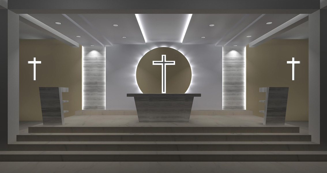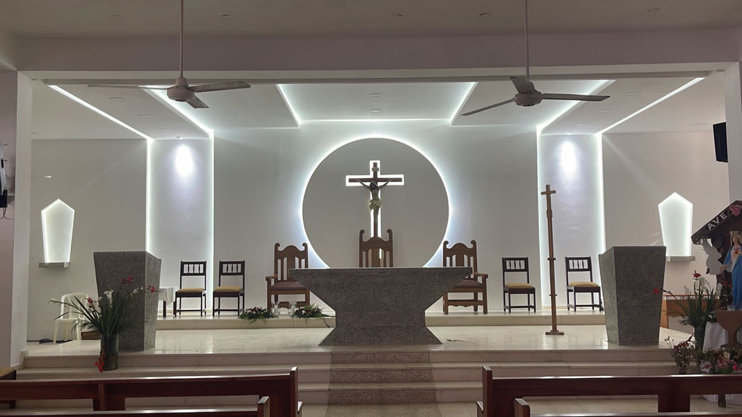 Remodelación interior moderna y expresionista, pero aún conservadora de la solemnidad de sus símbolos religiosos en la DISTINGUIDA Parroquia Inmaculada. en colaboración con el arquitecto George López.