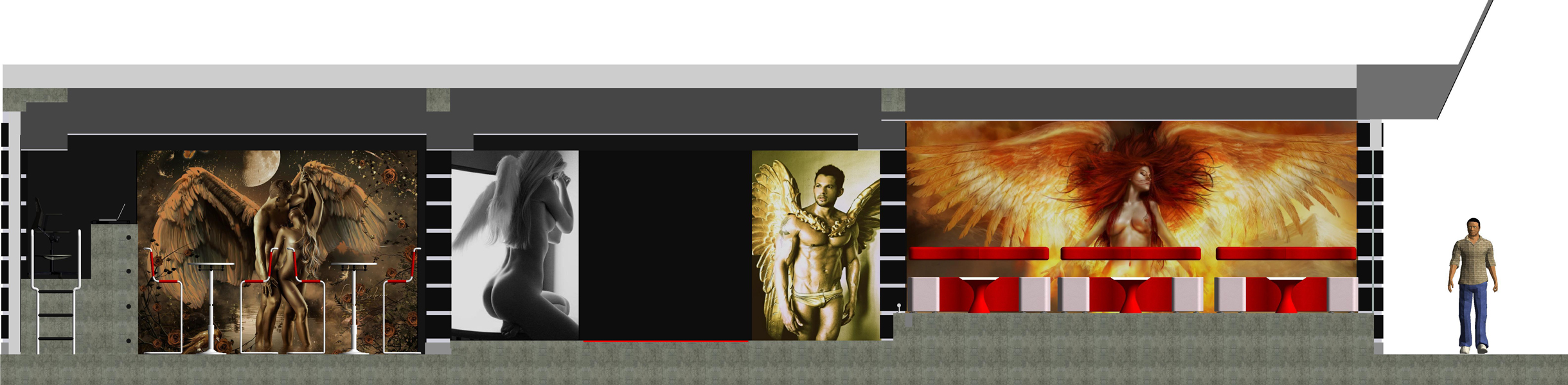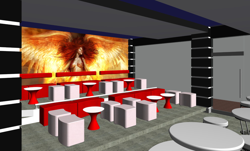 Espacio de esparcimiento para la vida nocturna, con un concepto basado en la Luna, en el cual se reflejan los ángeles, el rojo y el azul de dos lados opuestos, produciendo un escenario tentador y atrevido.